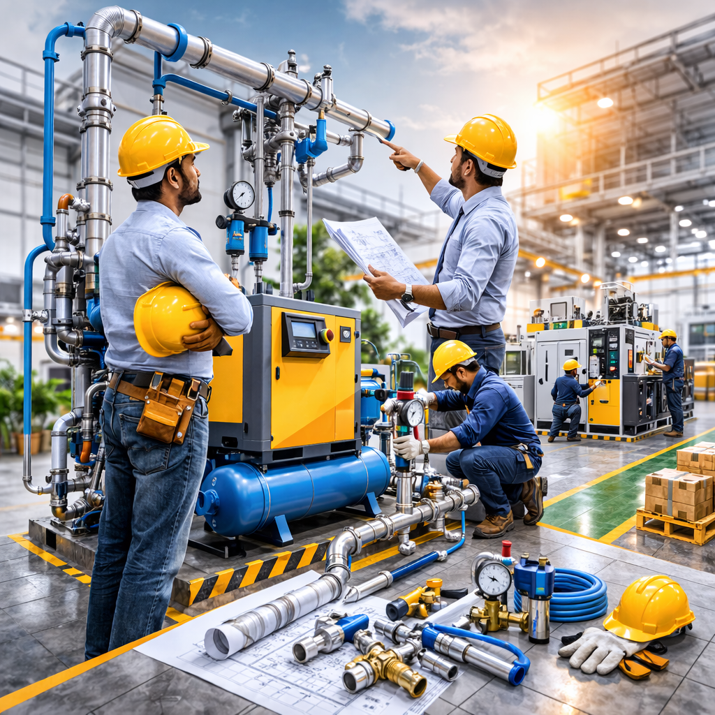 We analyze your required CFM, working pressure, application type, and plant layout. Based on this, we design the compressor capacity, air treatment setup, and piping size to ensure minimal pressure drop and optimal energy efficiency.